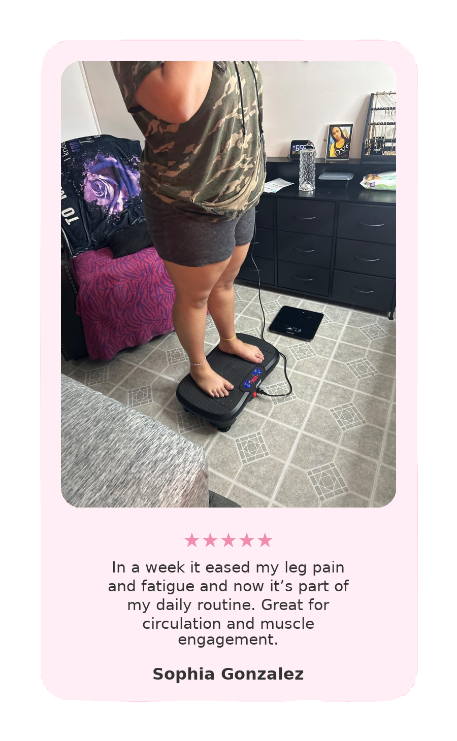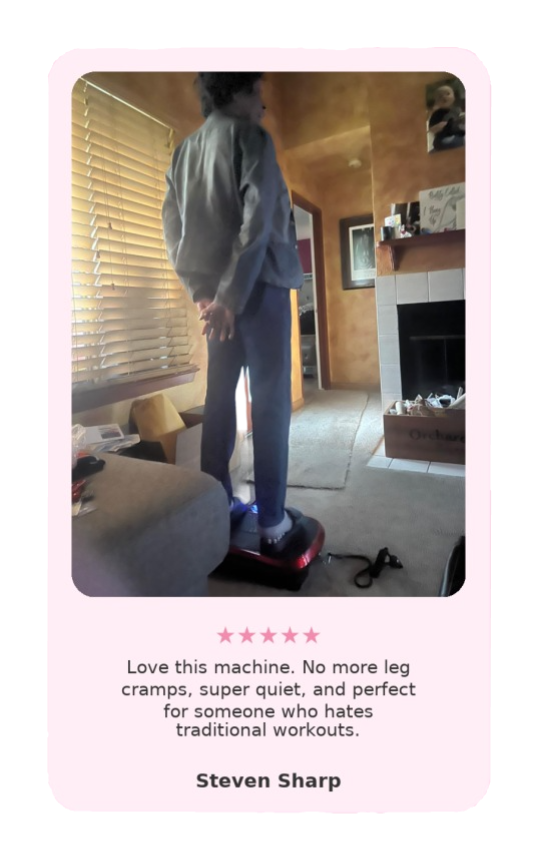 Gentle daily vibrations to help you feel more energized, support circulation, and keep muscles activated at home in just 10 comfortable minutes.